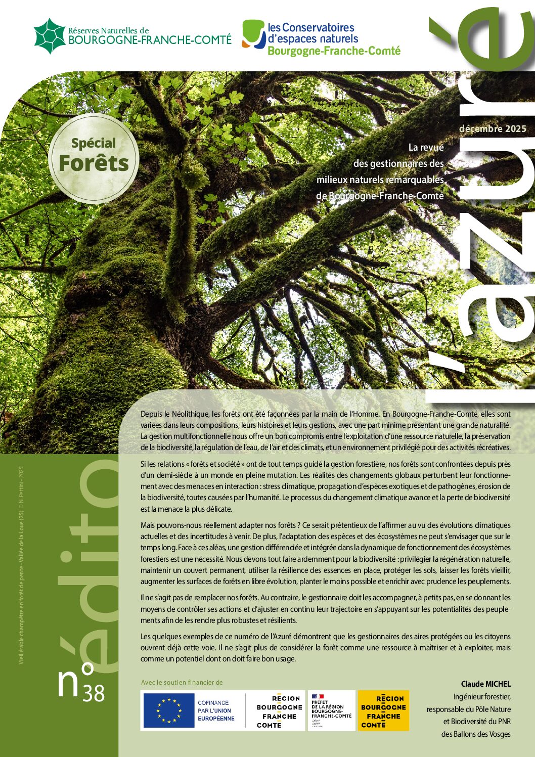 C’est une édition spéciale « Forêts » avec une brève sur le GGRFB mais également la signature de l’Obligation Réelle Environnementale entre deux membres du GGRFB : le Parc du Morvan et le GF pour la Sauvegarde des Feuillus du Morvan (p19). Les autres articles sont tout aussi intéressants sur les coléoptères saproxyliques dans les réserves naturelles de BFC, la stratégie de préservation pour les forêts à haute valeur écologique, etc.